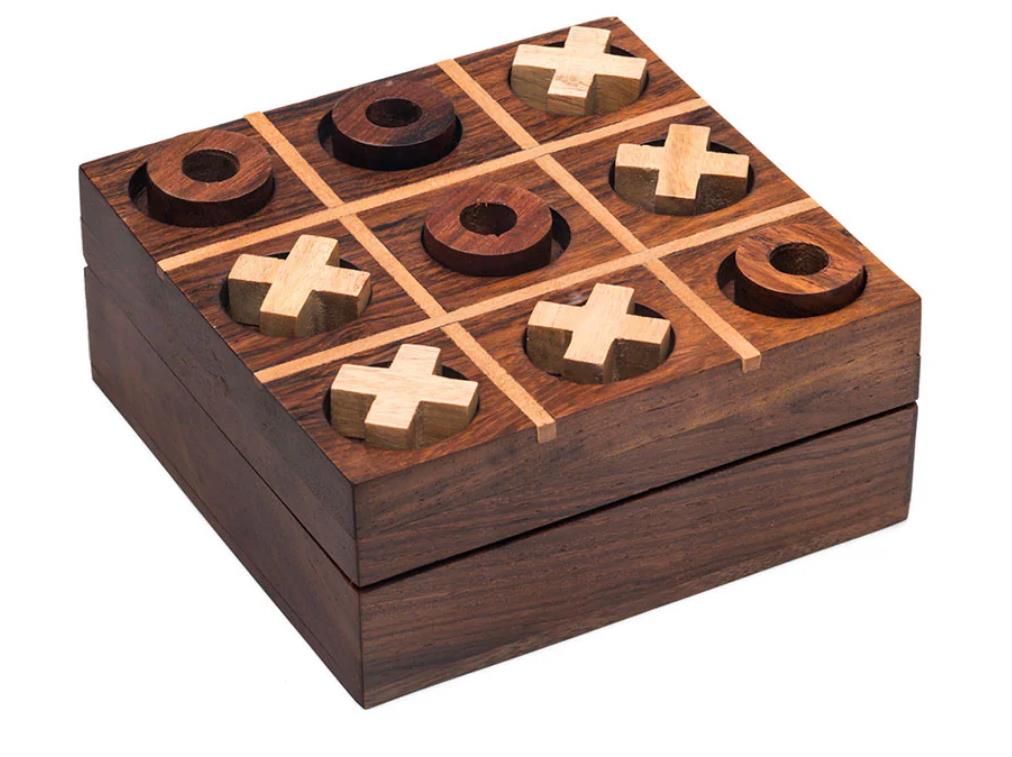 Play Tic-Tac-Toe on-the-go on this hand-carved Indian rosewood game set. It's the perfect game to keep on the coffee table for guests or on your office desk to challenge colleagues in a quick game. When not playing, the pieces fit perfectly inside the box. Makes a great gift for both teens and adults. Ethically handmade in India using sustainably sourced wood.